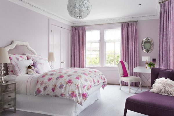 - La compatibilité des couleurs violettes et blanches ajoutera de la tendresse à l'intérieur et la pièce deviendra plus féminine.