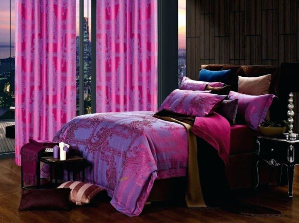 Dans la zone de couchage, les teintes lilas et lilas conviennent mieux. Ils auront fière allure à la fois sur les rideaux lourds et sur les rideaux d'air légers.