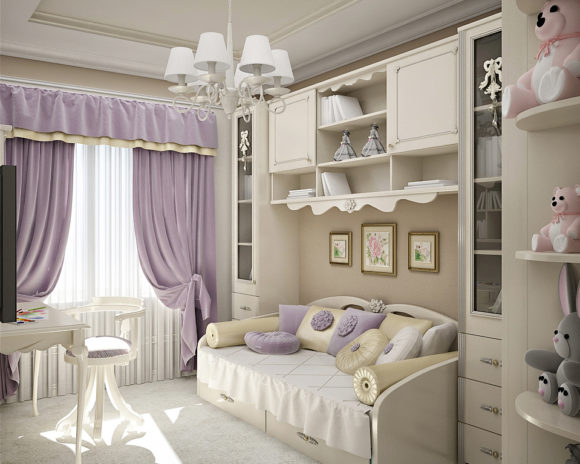 Lors de la création d'une chambre d'enfant, vous devez faire attention à son style. Ce sera bien si cela coïncide avec l'idée générale de la conception d'un appartement ou d'une maison. Mais avec des déviations mineures, l'harmonie peut également être atteinte en écrivant les éléments nécessaires dans l'idée. Pour une fille, il est conseillé de concevoir une chambre dans les styles suivants: