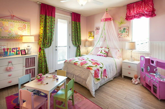 - La pièce doit être décorée dans des couleurs appropriées. Mais cela ne signifie pas du tout que lors de la réparation d'une chambre pour une fille, cela vaut la peine de la rendre complètement rose et de la remplir uniquement avec des poupées.