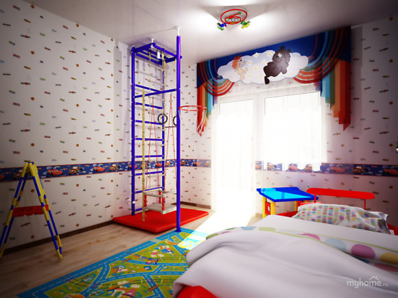 - La couleur. Le papier peint à partir de matériaux et de couleurs naturels est naturel: brun ou jaune foncé. Mais ils peuvent être décorés d'images ou d'affiches, conçus comme un bateau pirate ou une fabuleuse maison. Une telle solution séduira autant les enfants que les papiers peints lumineux.