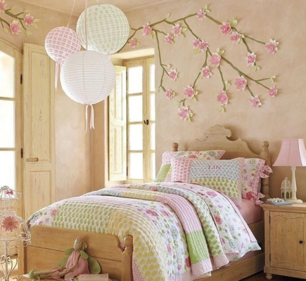 Des panneaux muraux originaux, des meubles en bois tout en préservant la texture naturelle, des abat-jour et des lampes non conventionnels peuvent créer une ambiance agréable pour la fille à tout moment et par tous les temps en dehors de la fenêtre.