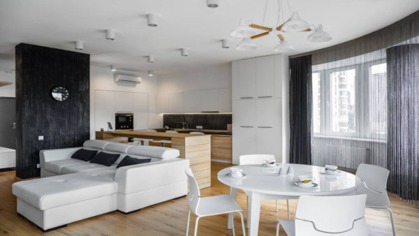 - Un style unique rendra la conception de l'appartement harmonieuse. Avec une disposition ouverte, cela est particulièrement important. Privilégiez la simplicité et la clarté.