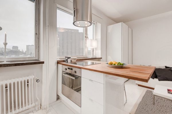 - Lors de l'achat de meubles pour la cuisine, il est préférable de privilégier les appareils encastrés, qui prennent beaucoup moins de place que l'habituel.