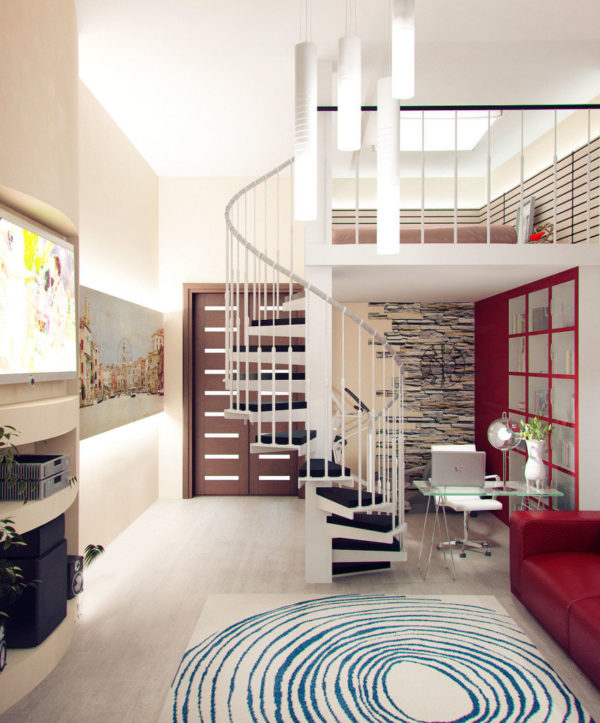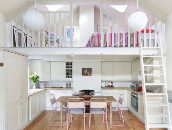La construction du deuxième niveau est la seule solution. Pour cette raison, il est possible non seulement d'agrandir la zone utilisable, mais également d'aménager un coin séparé pour celle-ci. Un tel intérieur est toujours original.