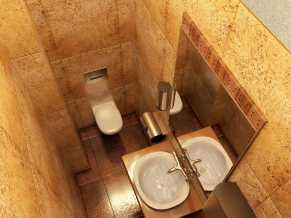 La situation dans une petite toilette ne peut souvent vous surprendre qu'avec la présence d'une toilette, fixée à côté du porte-papier et de la brosse. Mais si vous essayez d'installer les toilettes non pas au milieu, mais, par exemple, dans le coin, l'espace libre pour un mini-évier apparaîtra immédiatement dans la pièce.