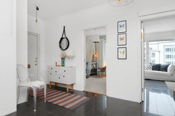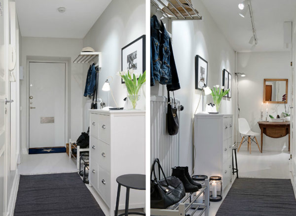 Le hall d'entrée doit être sobre et élégant, comme le montrent de vraies photos de l'intérieur dans le style scandinave de cette époque.