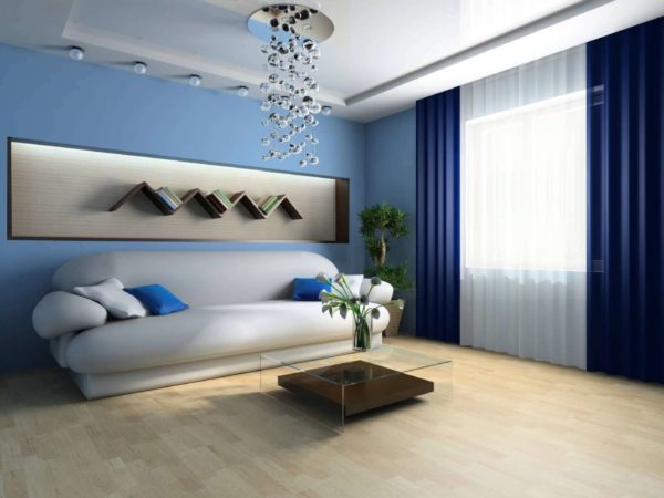 L'intérieur de l'appartement aux couleurs vives donne une sensation de fraîcheur et de paix. C'est peut-être pour cela qu'il ne perd pas de sa pertinence. Choisir l'option la plus appropriée qui correspond à vos préférences gustatives et au monde intérieur aidera la photo.