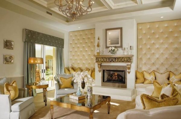 Les règles et les idées de l'intérieur dans des tons dorés sont toujours en demande, car dans le symbolisme des couleurs, ce sont les nuances d'or et de soleil qui symbolisent la richesse, l'énergie et l'illumination. Jusqu'à récemment, il était étiqueté kitsch, mais en 2019, il est redevenu une tendance à la mode.