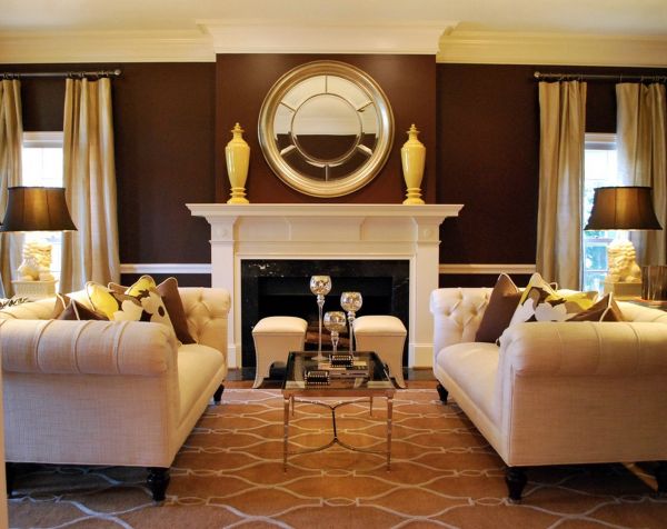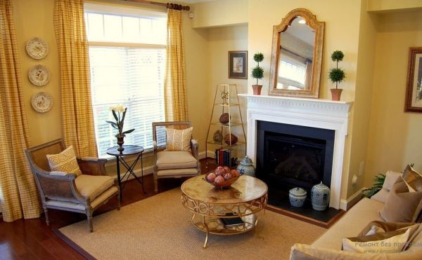 Un jeu délicat avec du marron foncé et laiteux, comme principales couleurs de l'intérieur, n'empêche pas le jaune d'or de dominer sur des chaises confortables, une lampe originale et des rideaux fantaisistes sélectionnés. Il n'y a pas un seul détail superflu, seulement un style classique raffiné clairement soutenu.