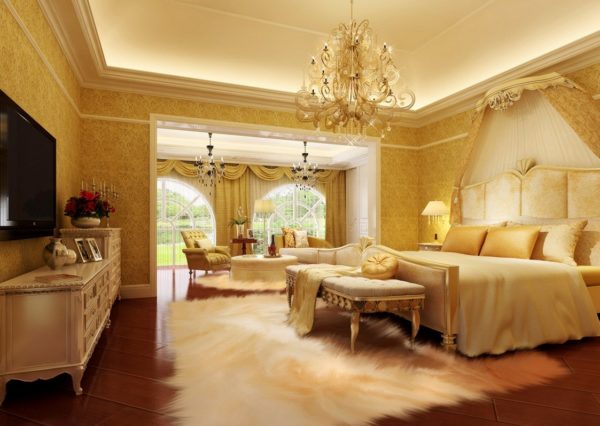 Pour la chambre, il est de coutume de pratiquer la version blanc doré, copiée des options historiques vues dans les musées. Au quotidien, cette combinaison est agaçante, peut priver de vacances reposantes et nuire au bien-être.