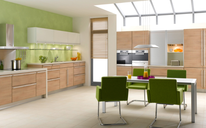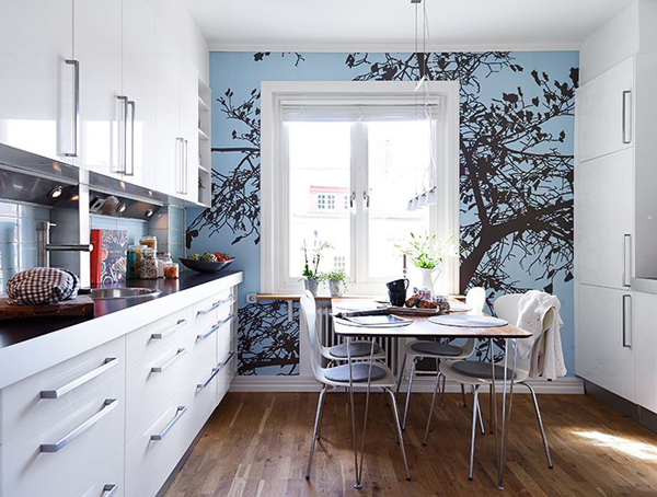 Lors du choix d'un casque de ces tons précisément, la cuisine deviendra confortable et calme. Dans cette pièce, l'harmonie se fera vraiment sentir. Cependant, comment choisir le papier peint pour la cuisine en fonction de la couleur du casque en vert ou en bleu, afin de souligner plus favorablement la tendresse, sans gâcher le style général?