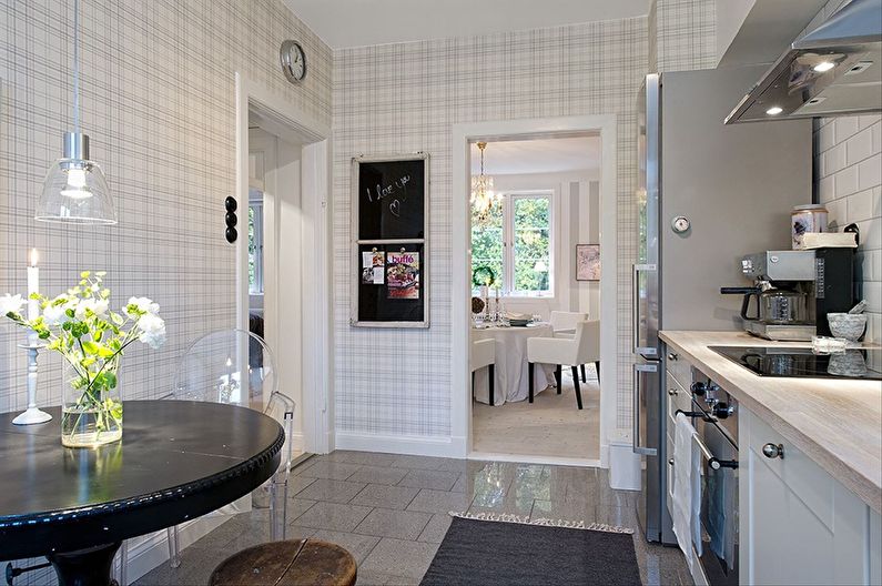 La cuisine doit être la pièce où vous vous sentez à l'aise. La sursaturation des solutions de couleur, ainsi que les ornements graphiques, les motifs doivent être évités.
