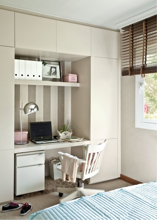 À 14 ans, la plupart des filles utilisent déjà du maquillage. Par conséquent, dans la chambre, vous devez installer une coiffeuse avec un miroir, où la fille peut apporter de la beauté.