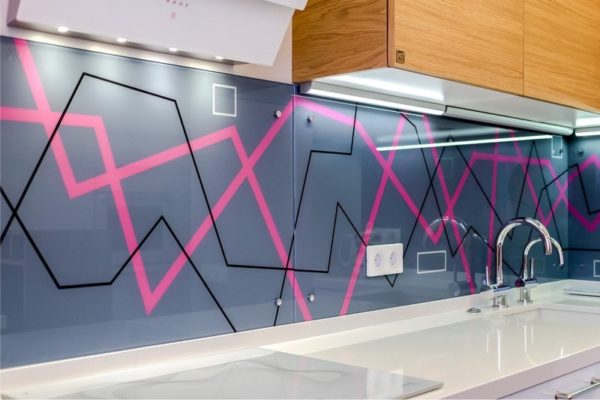 - Les matériaux de finition pour les cuisines doivent être faciles à entretenir. Le tablier en verre répond non seulement à ces exigences, mais apporte également de la variété à l'intérieur.