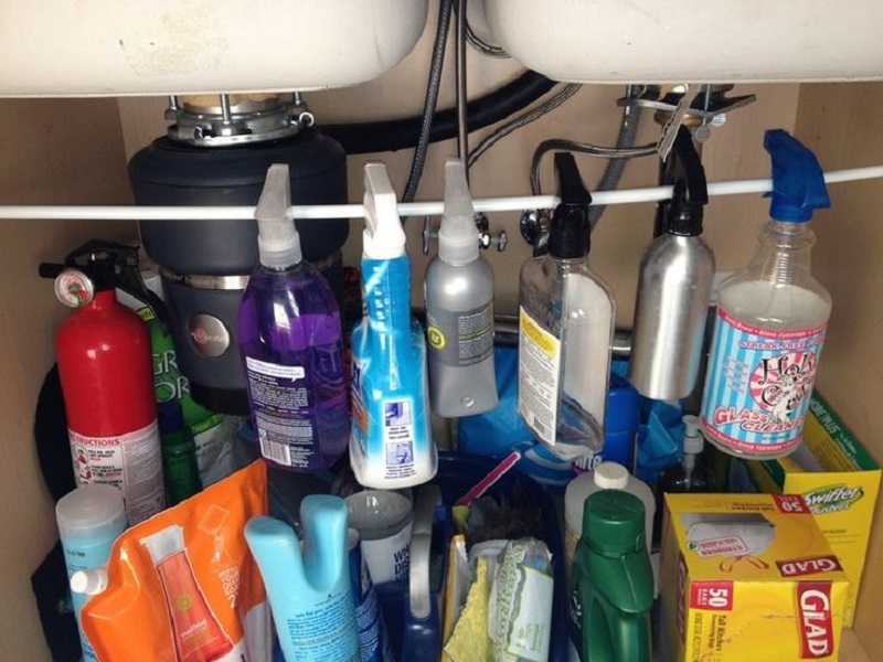 - Étagère au-dessus de l'évier, excellent espace de rangement pour les détergents. Il est pratique lorsque tout ce dont vous avez besoin est à portée de main.