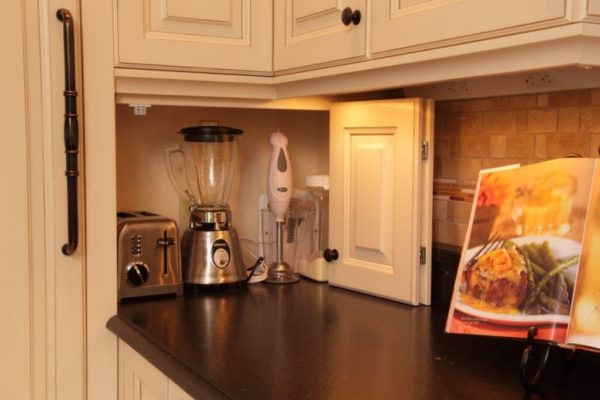 - Lors de la commande d'un casque sur commande, n'oubliez pas d'ajouter un tiroir secret avec une porte au plan. Il convient parfaitement aux petits appareils électroménagers (grille-pain, mixeur, mixeur).