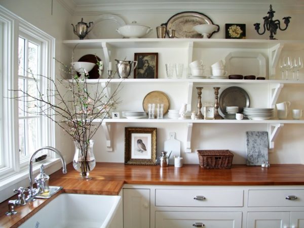 En tenant compte de cette idée, vous devez maîtriser une règle: les étagères ouvertes ne sont esthétiquement agréables que lorsqu'elles sont en parfait état.