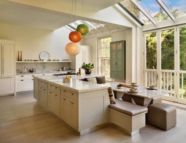 C'est aussi une bonne idée qu'un îlot de cuisine soit un endroit pour manger, quelque chose comme une table surélevée intégrée aux meubles de cuisine.