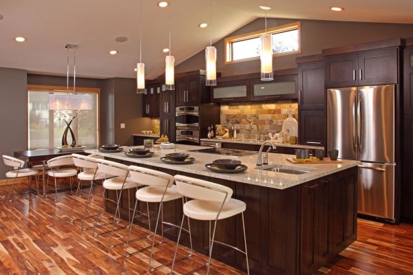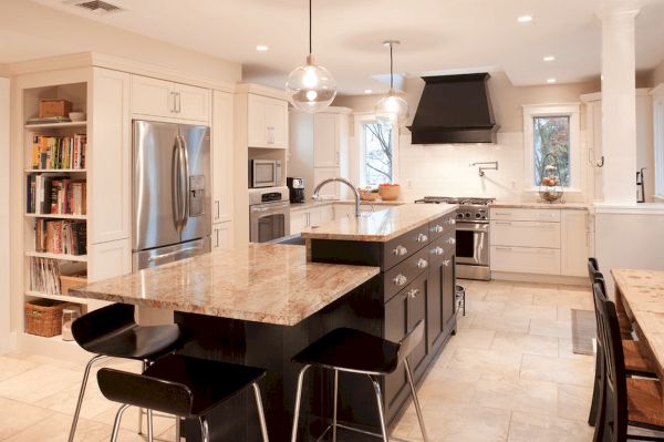 C'est aussi une bonne idée qu'un îlot de cuisine soit un endroit pour manger, quelque chose comme une table surélevée intégrée aux meubles de cuisine.
