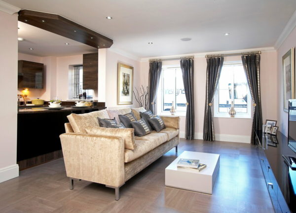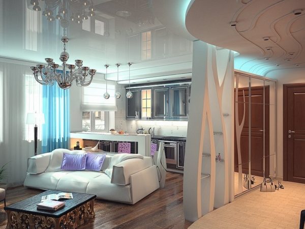 - Cette solution de conception est moderne. Il soulage les personnes vivantes des murs exigus, aide à utiliser correctement l'espace de vie existant.