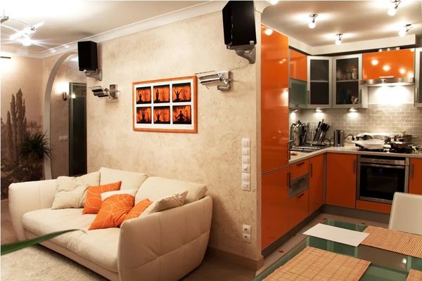 La mise à jour de l'intérieur de votre maison est très agréable. Toutes les idées de conception peuvent être traduites en réalité. Si vous le souhaitez, et la faisabilité technique dans un appartement ou une maison privée, vous pouvez combiner la cuisine et le salon. Si tout est fait de manière rationnelle, l'intérieur de la pièce plaira au propriétaire avec sa fonctionnalité et brillera de nouvelles couleurs. Vous pouvez recourir aux conseils de designers professionnels. Les photos vous aideront à choisir votre option.