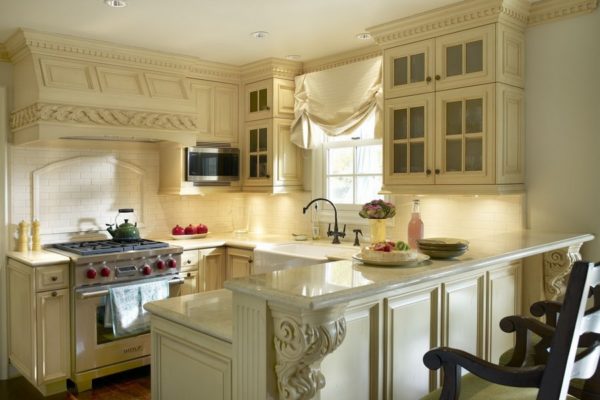 - Lors de la conception d'une cuisine en ivoire, vous ne pouvez pas utiliser plus de trois teintes différentes.
