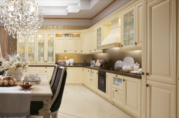 - Lors de la conception d'une cuisine en ivoire, vous ne pouvez pas utiliser plus de trois teintes différentes.