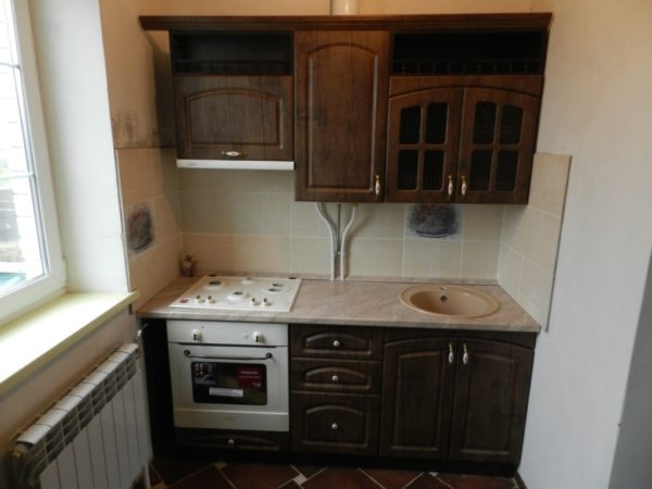 Il est fait de bois, ce qui signifie qu'il durera de nombreuses années. La massivité de ce style rendra la petite cuisine encore plus petite, car pour une petite surface, elle n'est pas très appropriée. Toutes les erreurs de pièce attireront immédiatement votre attention.