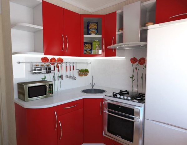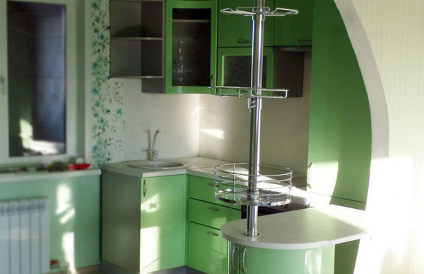 Si le poêle n'est pas utilisé souvent, il peut être remplacé par une plaque de cuisson. Il est préférable de le placer sur une boîte qui est installée, par exemple, pour la vaisselle. Le micro-ondes peut facilement s'accrocher au mur grâce à des supports spéciaux. Le réfrigérateur doit être choisi étroit et de préférence plus haut. Ou vous pouvez trouver en vente de petites unités spéciales.