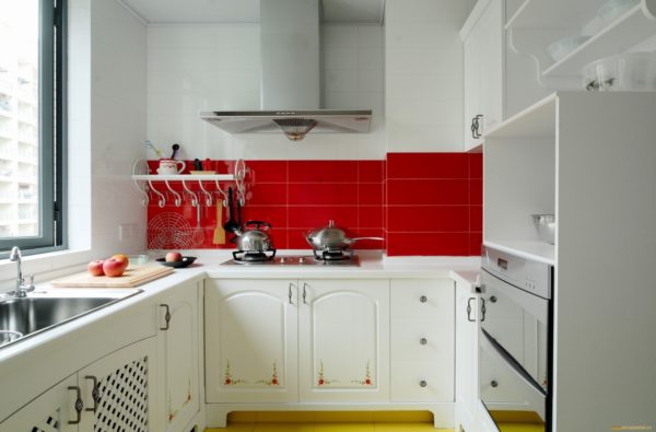 La cuisine marquée créera beaucoup de problèmes, peu la choisissent. Par conséquent, il devient nécessaire de diluer cette couleur avec d'autres, par exemple la crème, la perle, l'ivoire ou l'argent. Les couleurs pastel se marient bien avec le blanc, elles auront fière allure. Les couleurs vives conviennent également, y compris le noir, mais elles devraient mettre en évidence un endroit spécifique d'une petite taille.