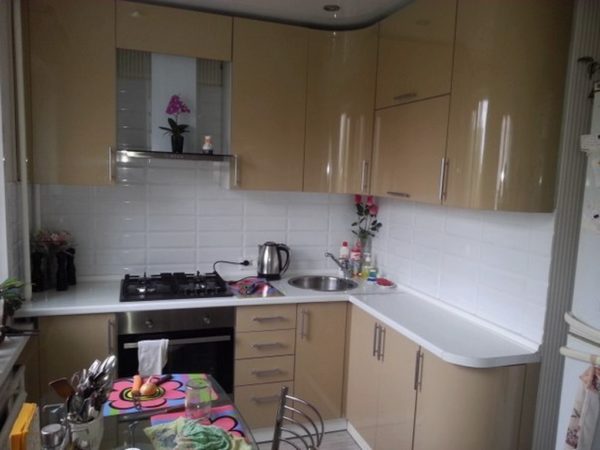 Si la rénovation des murs n'est pas incluse dans les plans de rénovation (combiner la cuisine avec le salon ou utiliser le balcon), il est alors nécessaire de choisir un design d'une certaine couleur afin d'agrandir visuellement la pièce.