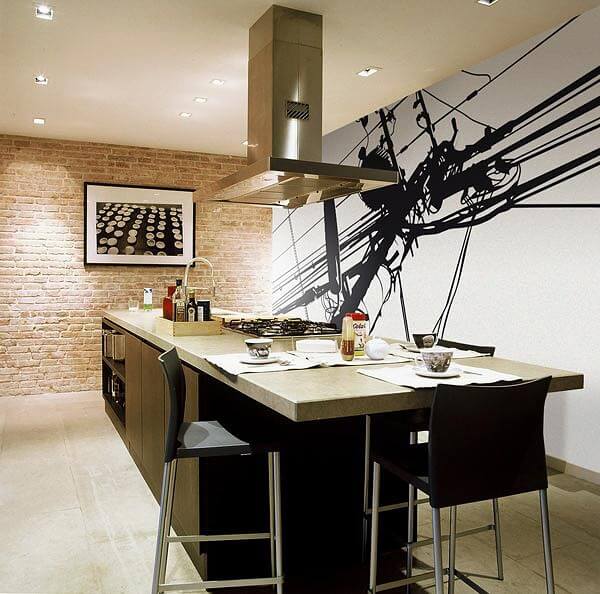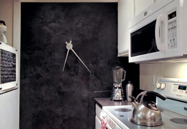 - Cela ressemblerait à une cuisine ordinaire, mais le mur noir avec des flèches blanches fascine et attire l'attention. Ainsi, avec un seul élément, vous pouvez transformer complètement la pièce.