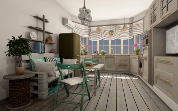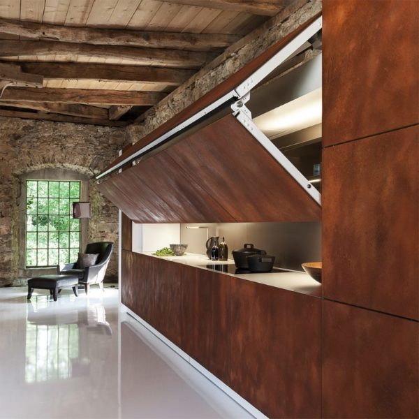 - La cuisine est cachée derrière une surface pliante, une telle solution serait idéale pour un petit appartement où il est nécessaire de combiner la cuisine avec une chambre ou un salon.