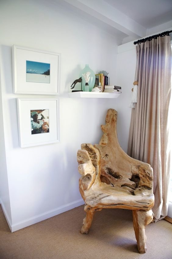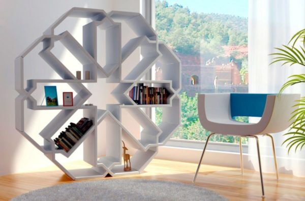 La division créative d'un petit espace et la limitation d'un grand espace écrasant peuvent se faire en créant un coin confortable - une zone de jeux, de travail mental ou de repos. Les deux éléments principaux de ce coin sont des chaises de forme inhabituelle en cuir et en bois et des étagères non triviales, souvent décorées dans un espace qui était auparavant non fonctionnel.
