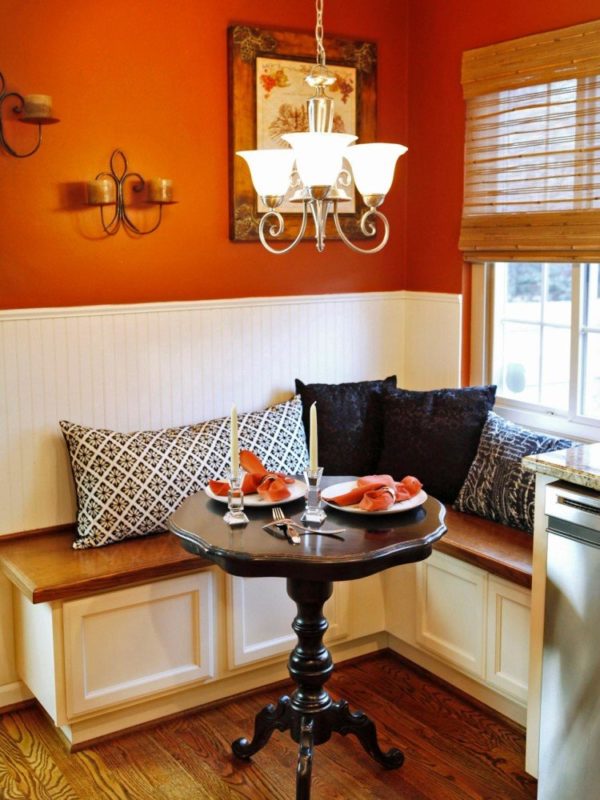 Nous vous suggérons d'utiliser l'une des nombreuses idées pour réorganiser un petit espace. Un coin repas confortable dans une petite cuisine est possible grâce au placement rationnel et fonctionnel de tout ce dont vous avez besoin.