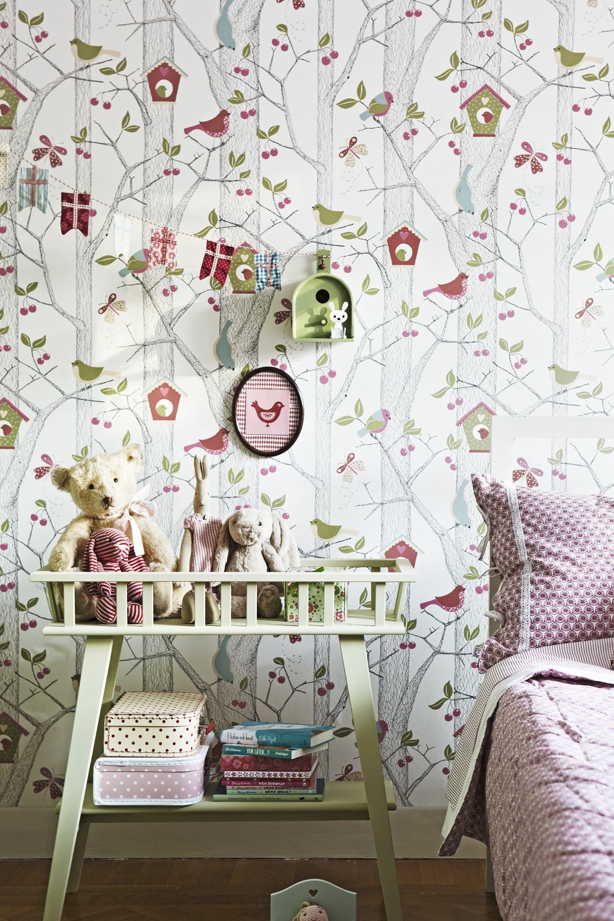 Pour les plus jeunes filles, vous devez sélectionner des fonds d'écran avec de petites images afin qu'ils introduisent la fille dans le monde extérieur.Par exemple, vous pouvez sélectionner des images avec les saisons, les animaux. Les peintures murales occupent généralement un long mur, et les papiers peints ton sur ton de la même couleur doivent être collés à d'autres.