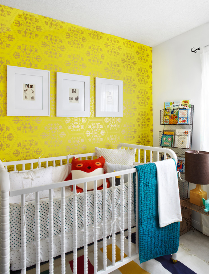 Si les fenêtres sont orientées au nord, du papier peint léger doit être collé à la pépinière. Si les fenêtres sont orientées au sud, il est possible de coller le papier peint sombre combiné.