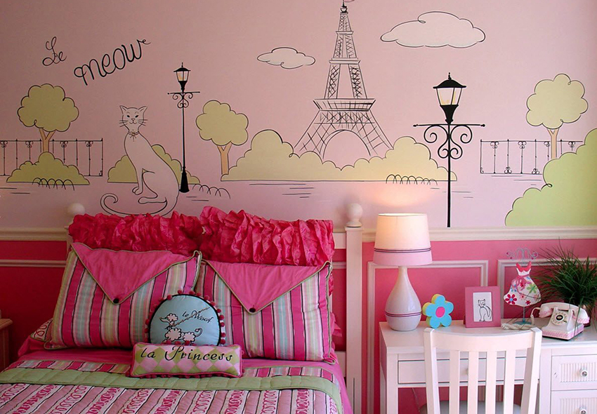 Les peintures murales ne se démodent jamais, elles restent toujours l'option la plus intéressante pour la décoration murale. Les progrès ne s'arrêtent pas, et au lieu de lacs et d'arbres banals, vous pouvez maintenant voir des images brillantes modernes de haute qualité. Le papier peint dans la pépinière pour les filles de 12 ans peut être fabriqué sur commande. Ils peuvent être réalisés selon n'importe quelle photo, même avec une photo d'une fille et achetés dans la boutique en ligne.