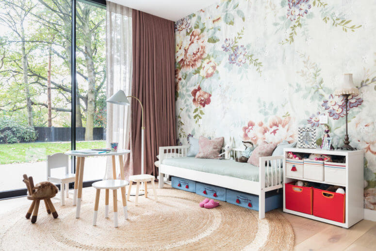 Il est fortement déconseillé de coller du papier peint rouge dans la chambre des enfants. Il est préférable de laisser les couleurs vertes, relaxantes et apaisantes pour l'enfant. Dans le même temps, faites très attention au matériau de fabrication des papiers peints. Ils doivent être respectueux de l'environnement, sans impact négatif sur la santé de l'enfant.