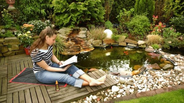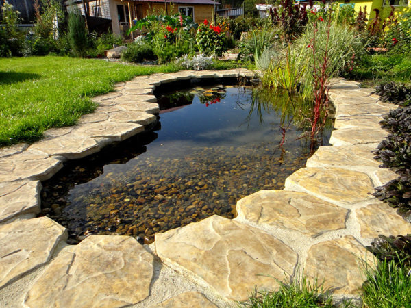 Il ne reste plus qu'à remplir l'étang et à le décorer au goût et à volonté. Donc, autour de l'étang, vous pouvez planter des plantes aquatiques ou simplement mettre des pots avec de belles plantations.