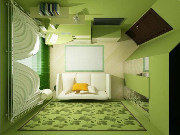 Si vous êtes intéressé par le fait que les plans des murs et des plafonds ont été décorés dans le même ton et, par conséquent, ne ressemblaient pas à des taches sombres et laides, décorez l'intérieur avec des couleurs plus vives. Pas besoin d'ajouter des tapis de grand-mère et une commode à l'ancienne avec un canapé. Le style doit adhérer aux notes modernes.