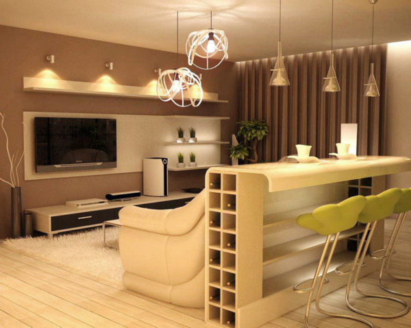 Le comptoir de bar est fait pour le comptoir des points de vente, la hauteur de l'établissement est pratique, vous pouvez donc cacher tout désordre dans le lieu de travail. Personne ne remarquera de chiffons sales, de serviettes. Pour une maison, c'est une invention surdimensionnée.