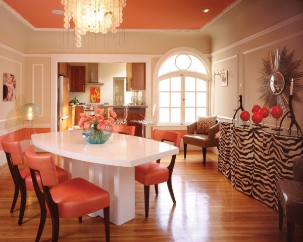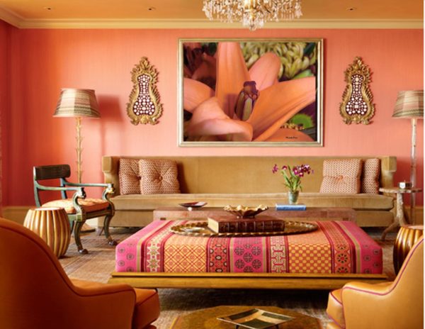 La couleur pêche est utilisée à l'intérieur pas trop souvent, mais en vain, car cette nuance provoque le calme et la joie. Les chercheurs notent que la pêche est associée à la douceur, à la légèreté et à la féminité, provoque une sensation d'harmonie et d'élévation. C'est super pour n'importe quelle pièce.