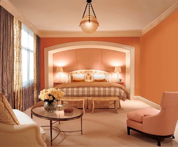 - La pêche pure est préférable d'utiliser dans la chambre: elle se détend, augmente la sensation de confort, plaît à l'œil même un matin nuageux, vous permettant de vous réveiller plus rapidement.