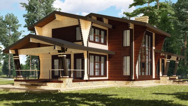 Les bâtiments résidentiels en bois, comme sur la photo, sont aujourd'hui considérés comme populaires et en demande. De tels projets de maisons en bois peuvent être trouvés presque partout.