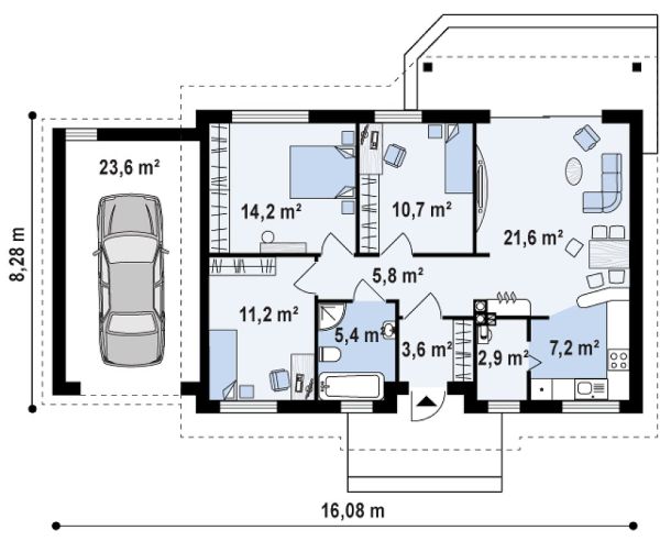 À partir d'un matériau de construction respectueux de l'environnement pour la vie, comme une poutre, une maison avec garage est toujours plus confortable et chaleureuse, ce qui est très important. De plus, de telles structures peuvent avoir un aspect intéressant, voire inhabituel.
