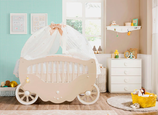 Transformateur de lit bébé. Utilisant des éléments spéciaux, il passe d'un petit berceau à un lit bébé complet pour les enfants jusqu'à 10 ans. Prix: 500-700 euros