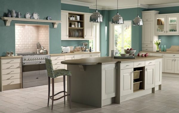 Pour un style pompeux, royal, victorien, vous pouvez choisir des nuances chocolat et or pour les murs. Hi-tech ou moderne aura fière allure dans un design gris-beige. Le vert clair ou le lilas sera également un bon choix pour la couleur des murs de la cuisine ivoire.