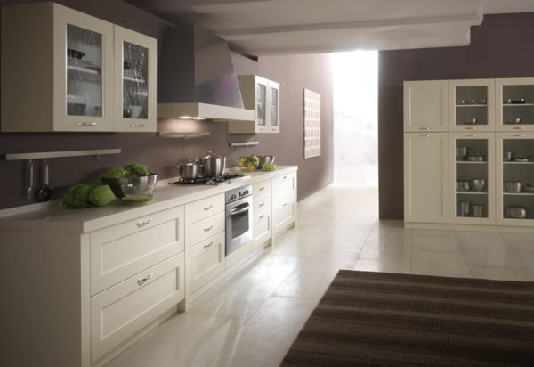 Un facteur important dans le choix d'une couleur pour les murs est le style de la cuisine. Une bonne combinaison serait une cuisine de couleur ivoire dans le style provençal, si elle est complétée par des murs violets ou des couleurs lavande et lilas.